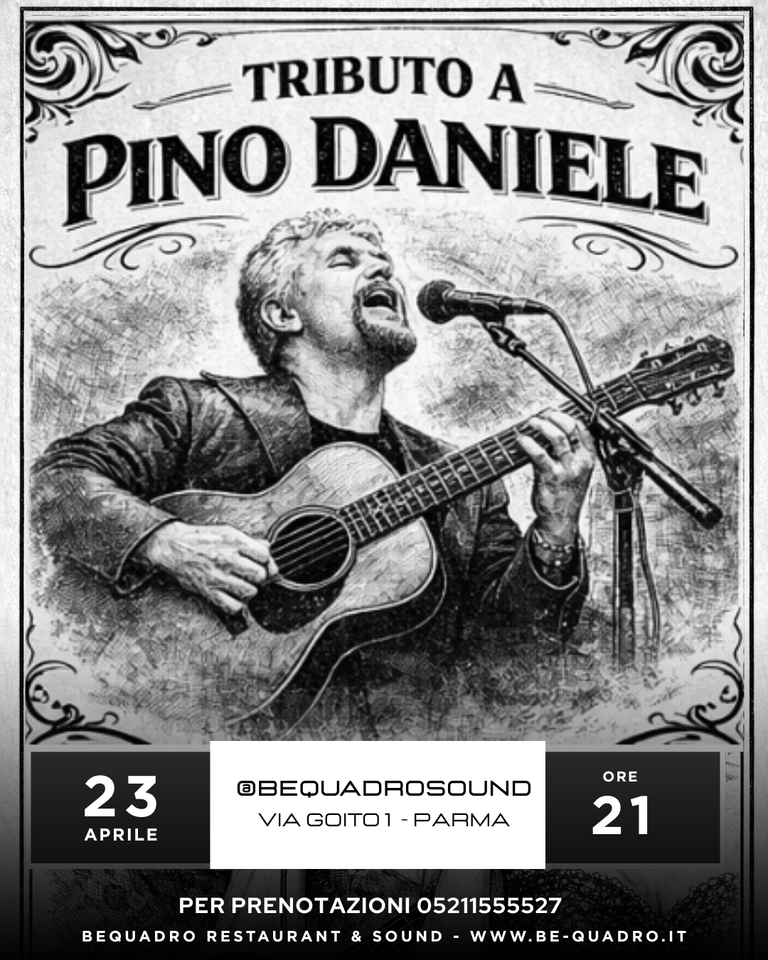 Una serata speciale dedicata al grande cantautore napoletano, nel giorno del suo compleanno e della Festa del Papà. Tra blues, jazz, funk e le sue melodie inconfondibili, i brani che hanno fatto la storia di Pino Daniele — da “Napule è” a “Quando” e “Je so’ pazzo” — rivivono sul palco con passione ed energia.