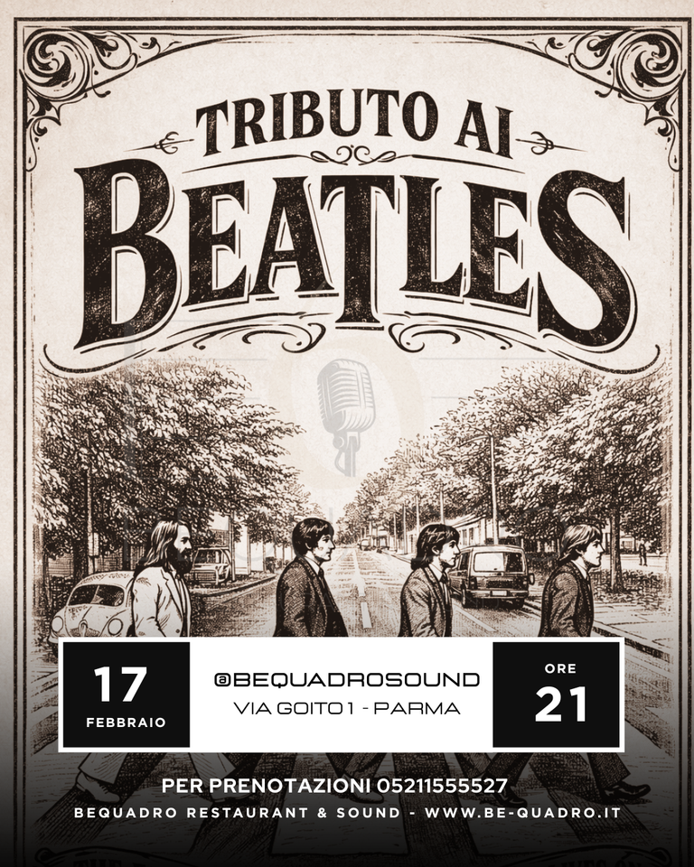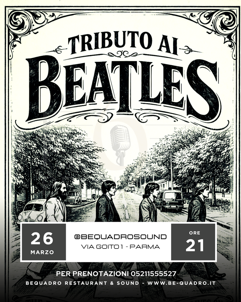 Una serata multisensoriale in cui la musica dei Beatles incontra la cucina d’autore dello Chef Roberto Pallini, accompagnata dalla band composta da Luca Savazzi, Stefano Carrara, Letizia Brugnoli e Leo Caligiuri, per un’esperienza unica e coinvolgente, in collaborazione con Bequadro Restaurant and Sound, il Comune di Parma e Foralberg.